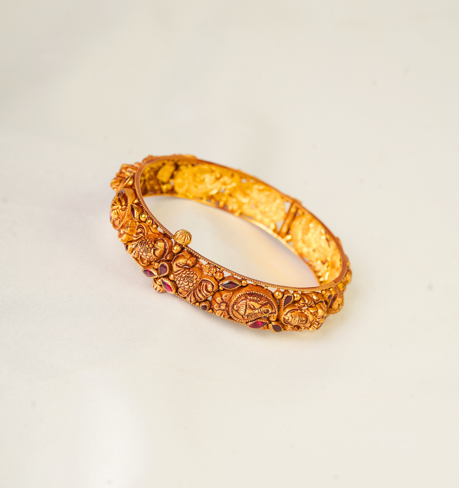 A timeless treasure crafted in pure 22Kt gold, these antique bangles feature intricate traditional motifs and rich craftsmanship. Designed to reflect heritage and grace, exclusively from Sri Swarnambigai Jewellers.