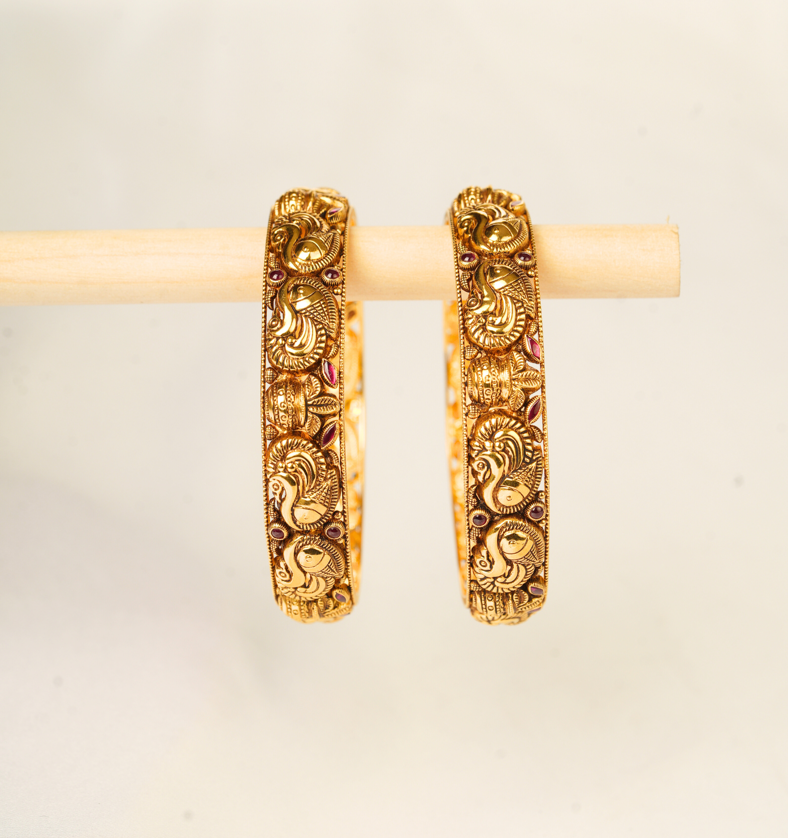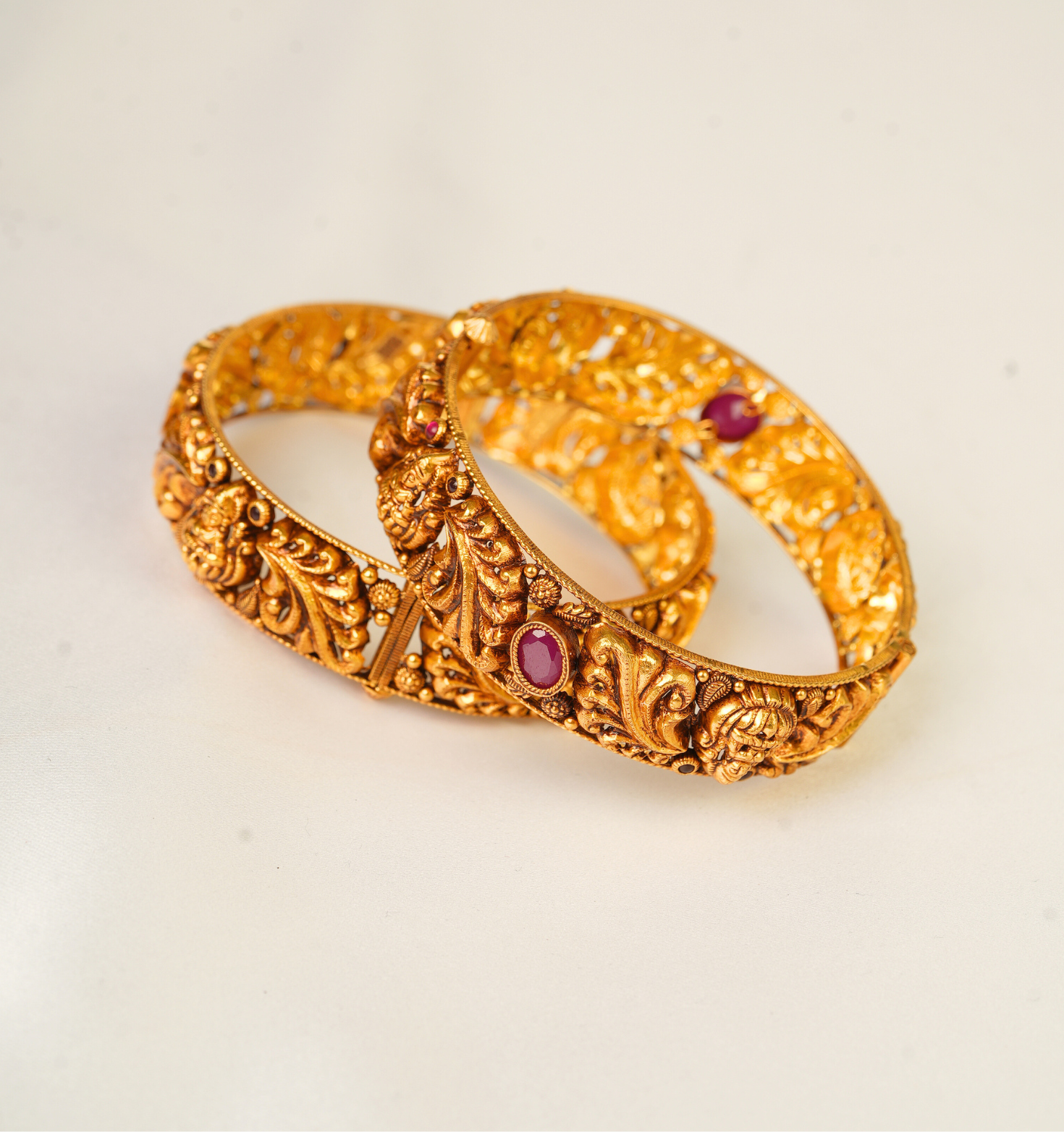 Timeless elegance in every curve — these Antique Bangles, crafted in 22Kt gold and weighing 28.410 grams, reflect rich heritage with intricate detailing.