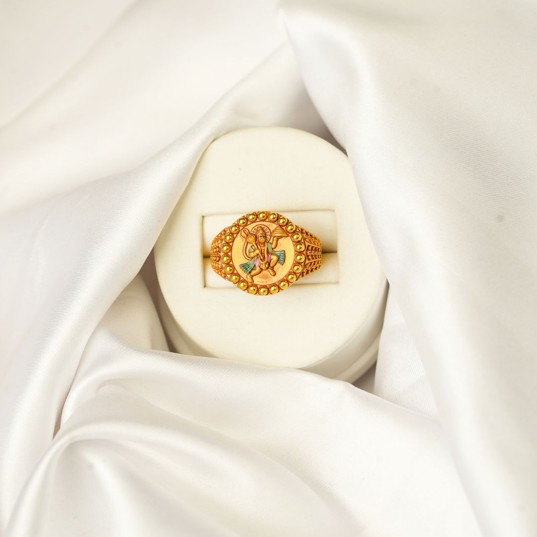 Elegantly crafted 22Kt Antique Gents Ring weighing 7.090 grams — a timeless symbol of strength and tradition. Discover intricate detailing and classic charm, exclusively at Sri Swarnambigai Jewellers.