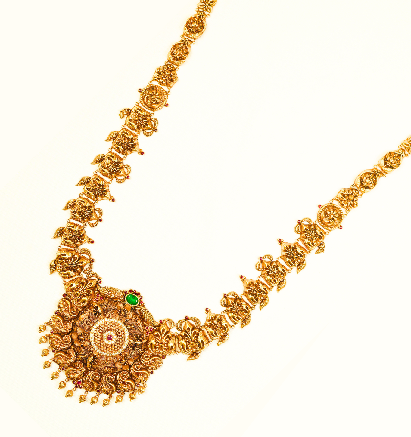 A majestic creation in pure 22Kt gold, this 57.530-gram Antique Haram is a true symbol of heritage and grandeur. Featuring intricate antique craftsmanship and timeless elegance, it’s the perfect choice for bridal wear or special occasions. Own a legacy of tradition — exclusively at Sri Swarnambigai Jewellers.