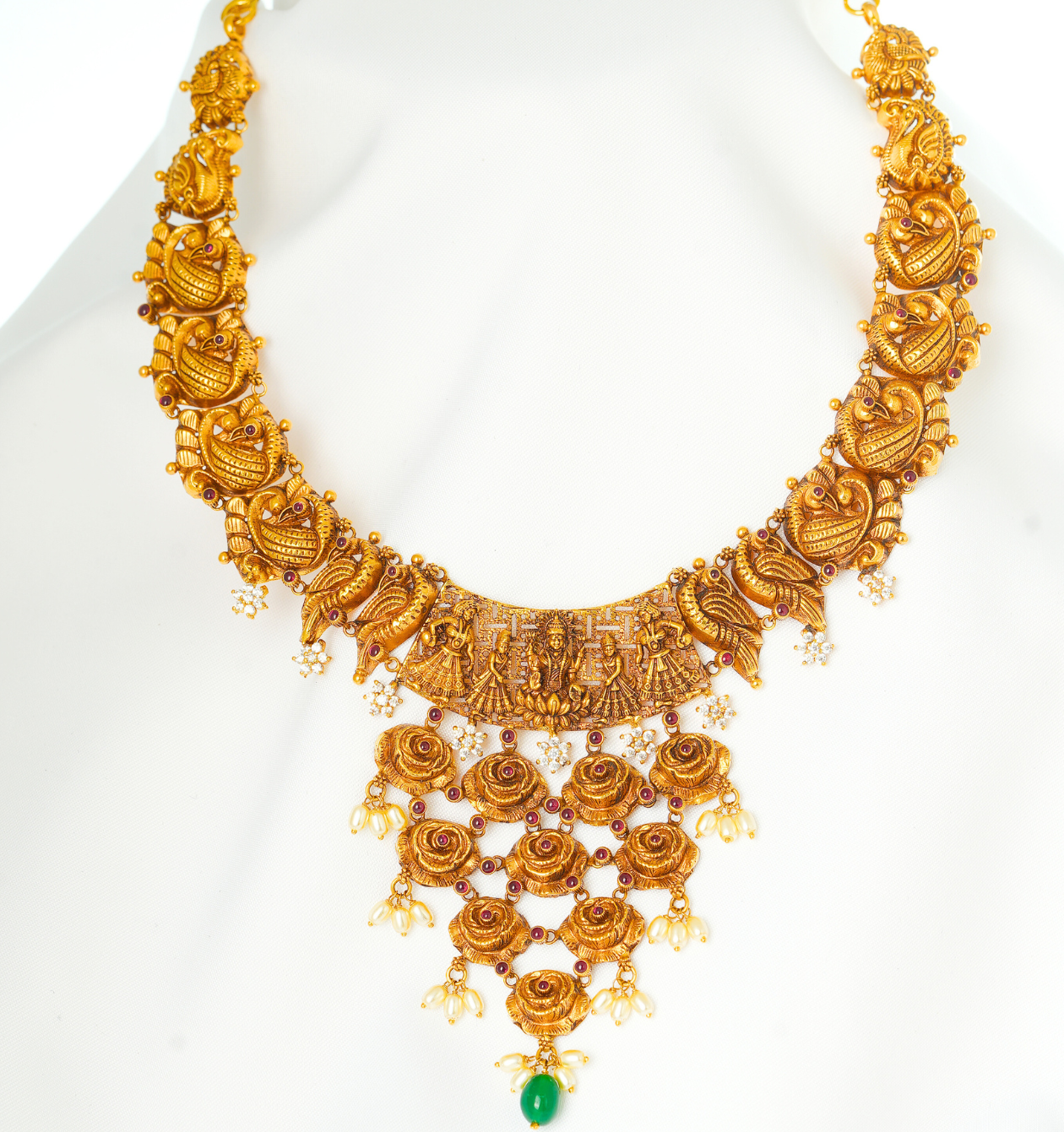 Crafted in pure 22KT gold, this antique necklace showcases timeless elegance with intricate traditional detailing.