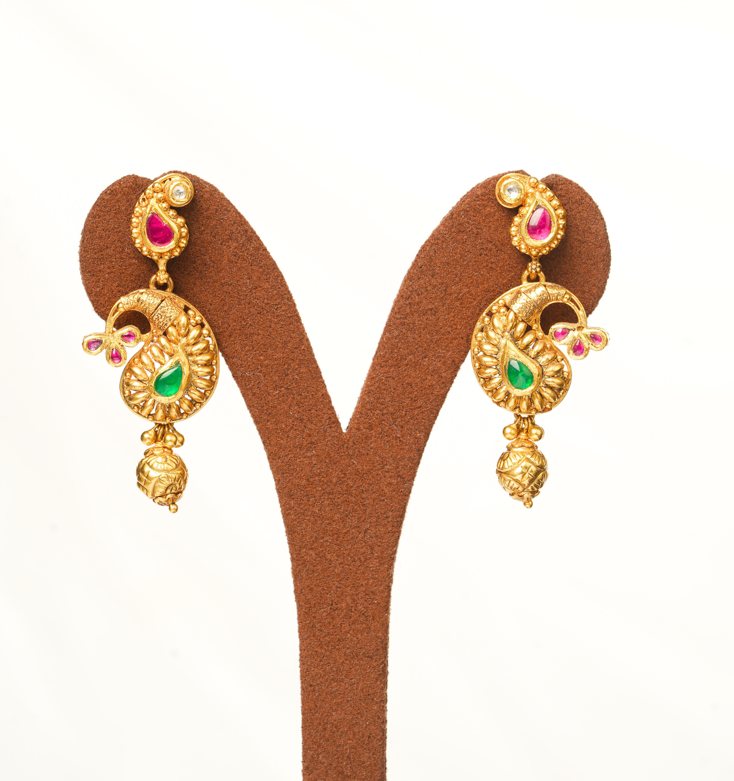 Crafted in pure 22Kt gold, this Antique Stud showcases rich traditional detailing with a timeless finish.