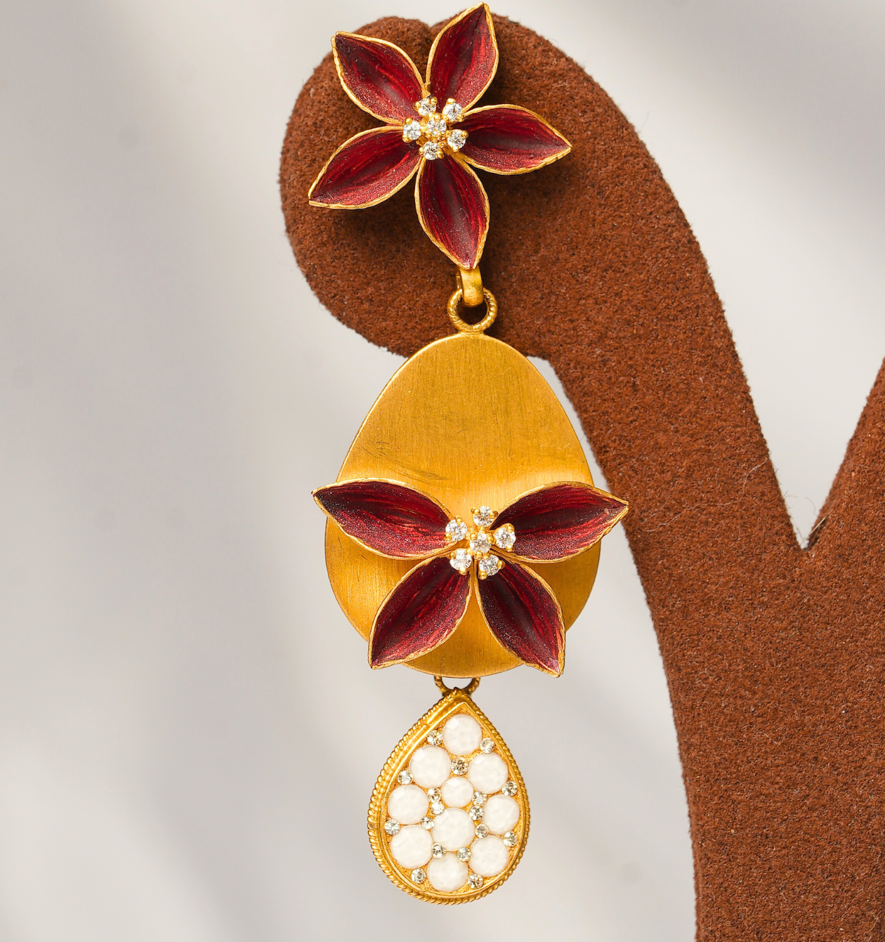 Crafted in pure 22Kt gold and weighing 22.170 grams, this antique stud showcases timeless beauty and intricate craftsmanship. A perfect blend of tradition and elegance, exclusively from Sri Swarnambigai Jewellers.