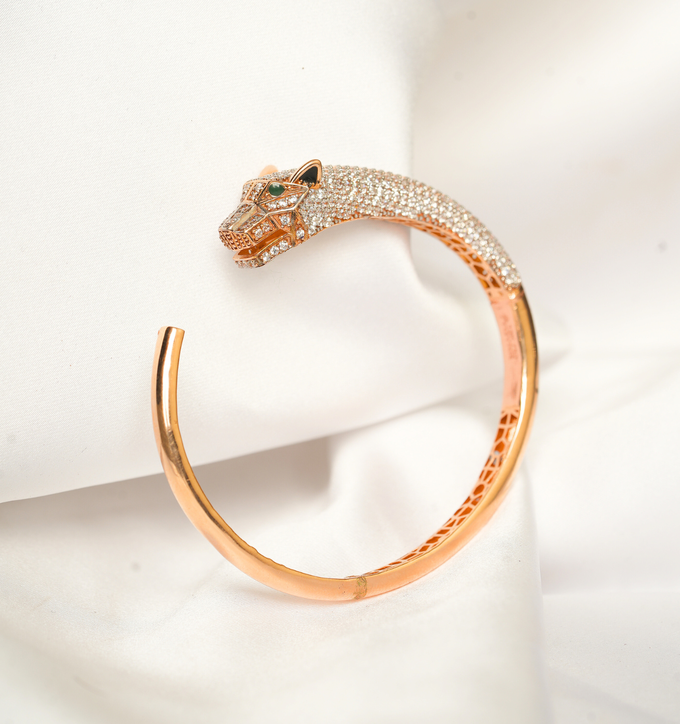 An iconic blend of elegance and luxury, this Cartier-inspired Kada is crafted in 18Kt gold with a sleek, bold finish. Perfect for those who seek timeless sophistication with a modern edge — exclusively at Sri Swarnambigai Jewellers.