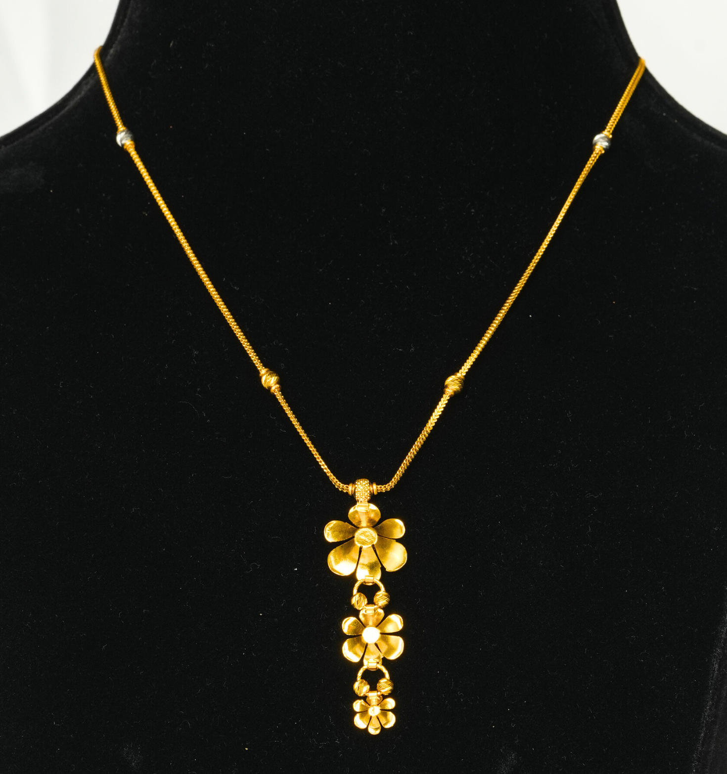 Crafted in pure 22Kt gold and weighing 7.840 grams, this elegant chain is the perfect blend of simplicity and sophistication. Ideal for daily wear or special occasions, its classic design makes it a timeless addition to your jewellery collection. Only at Sri Swarnambigai Jewellers