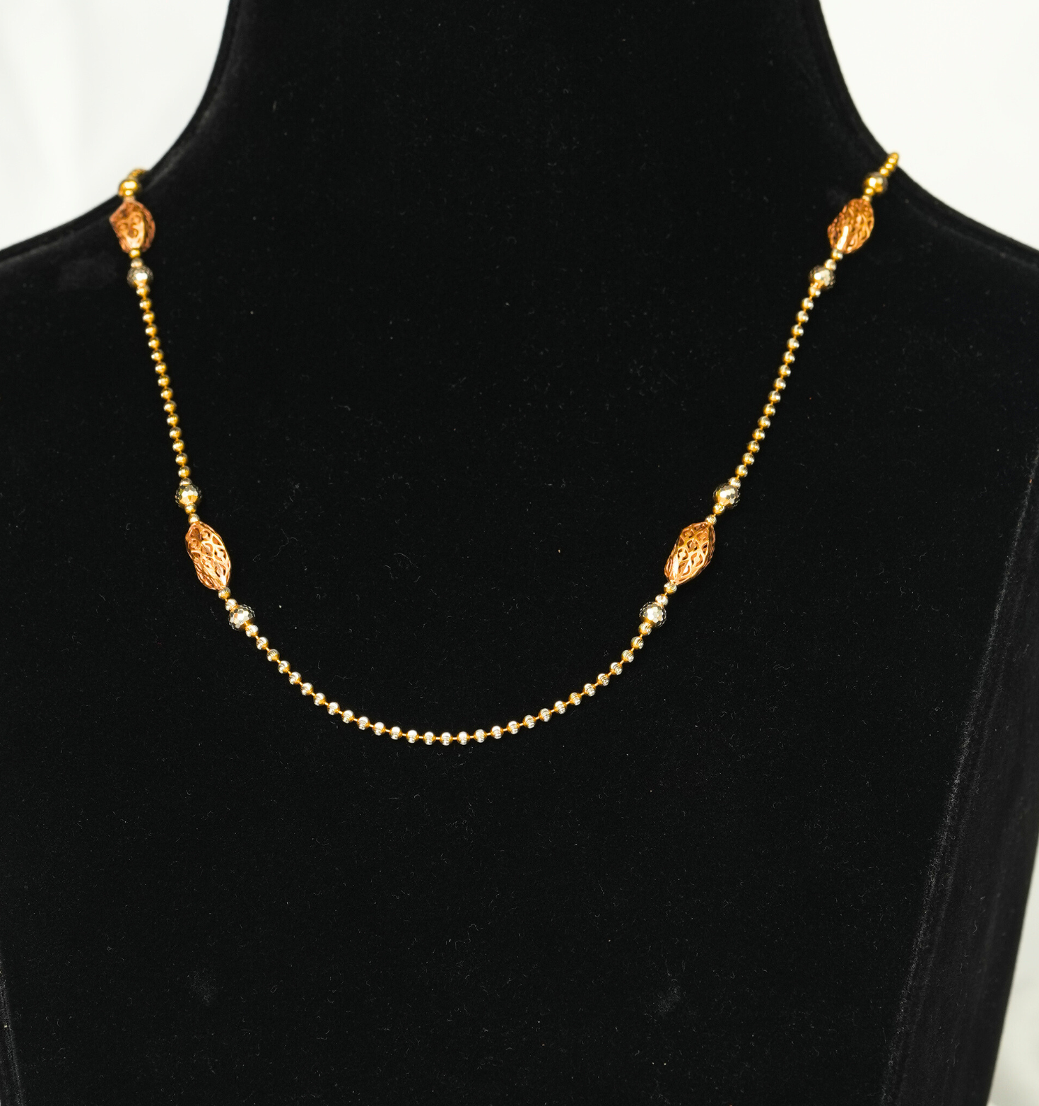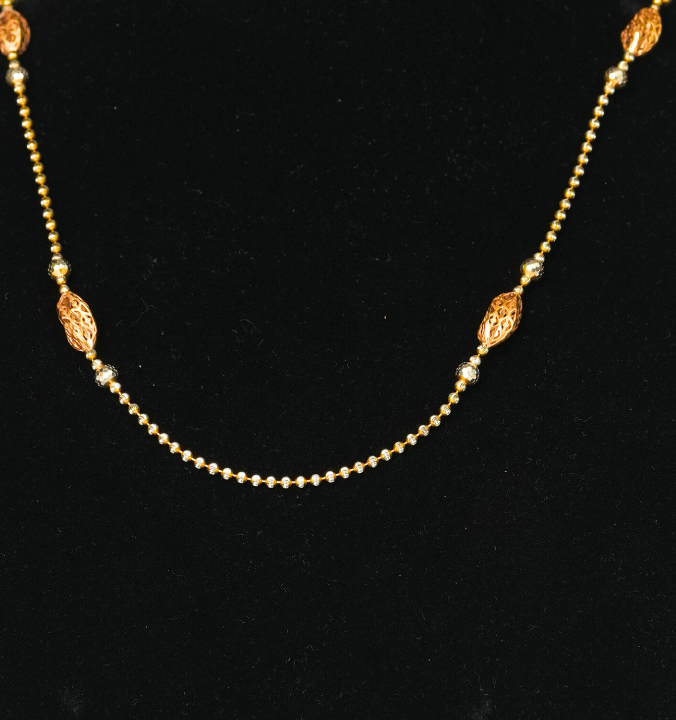 Crafted in pure 22Kt gold and weighing 11.760 grams, this Fancy Chain showcases a perfect blend of modern style and traditional craftsmanship. Its unique design adds a touch of elegance to any outfit — ideal for both daily wear and special occasions. Exclusively at Sri Swarnambigai Jewellers.