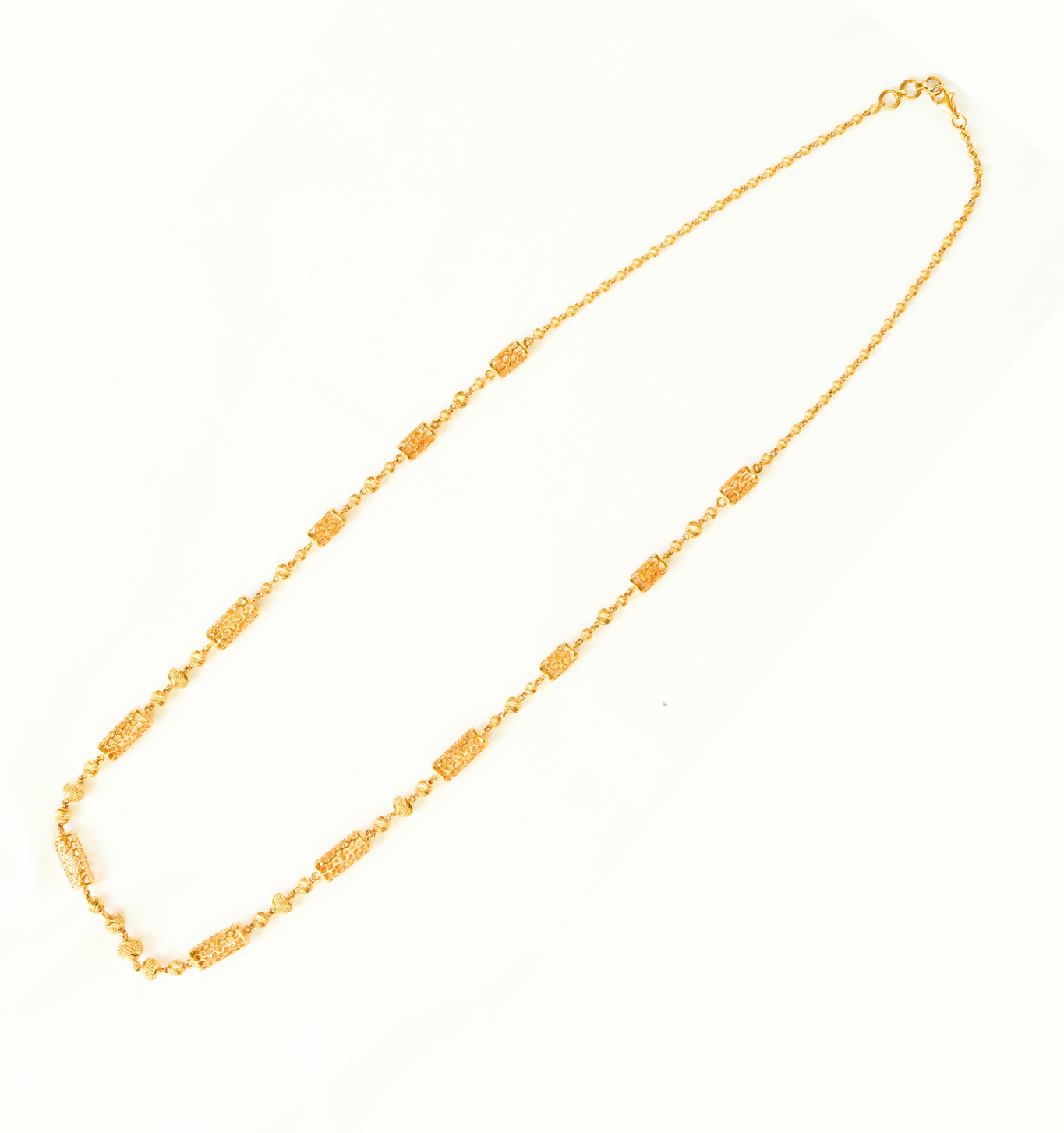 Make a bold style statement with this exquisite Fancy Chain, crafted in pure 22Kt gold and weighing 25.070 grams. With its intricate design and rich finish, it blends tradition with contemporary elegance — perfect for grand occasions or timeless gifting. Only at Sri Swarnambigai Jewellers, where elegance meets craftsmanship.