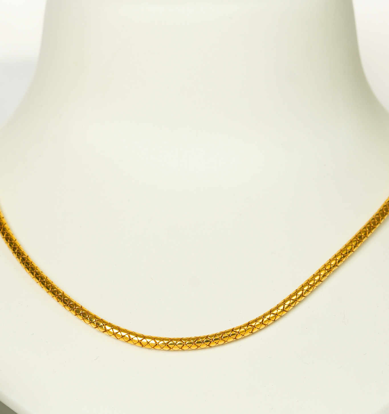 Make a statement with this exquisite Fancy Chain, crafted in pure 22Kt gold and weighing 32.180 grams. With its bold design and flawless finish, it perfectly blends luxury with tradition — ideal for festive occasions or grand celebrations. Discover elegance redefined, only at Sri Swarnambigai Jewellers.