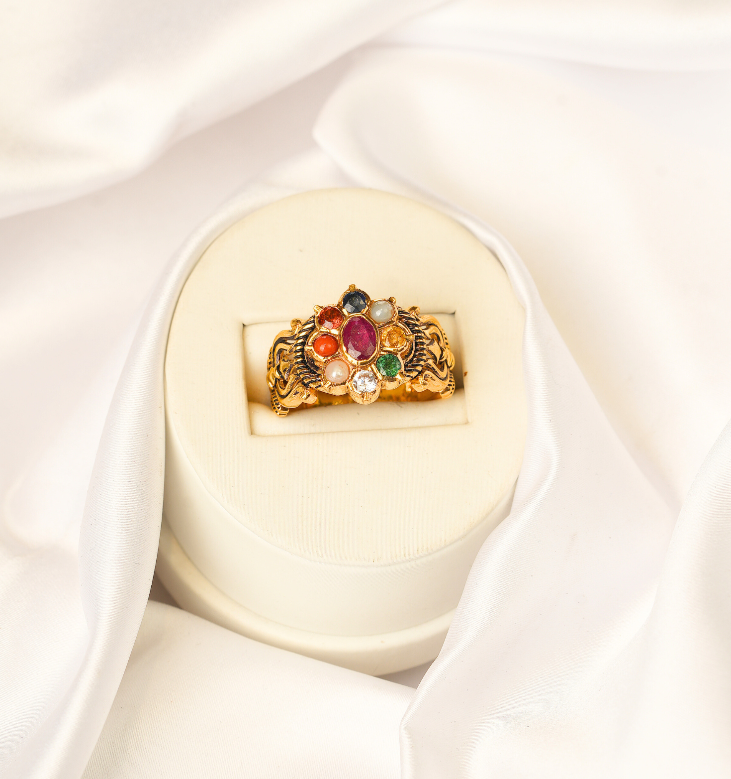 Gents Antique Navaratna Ring [12.150 Gram | 22Kt]