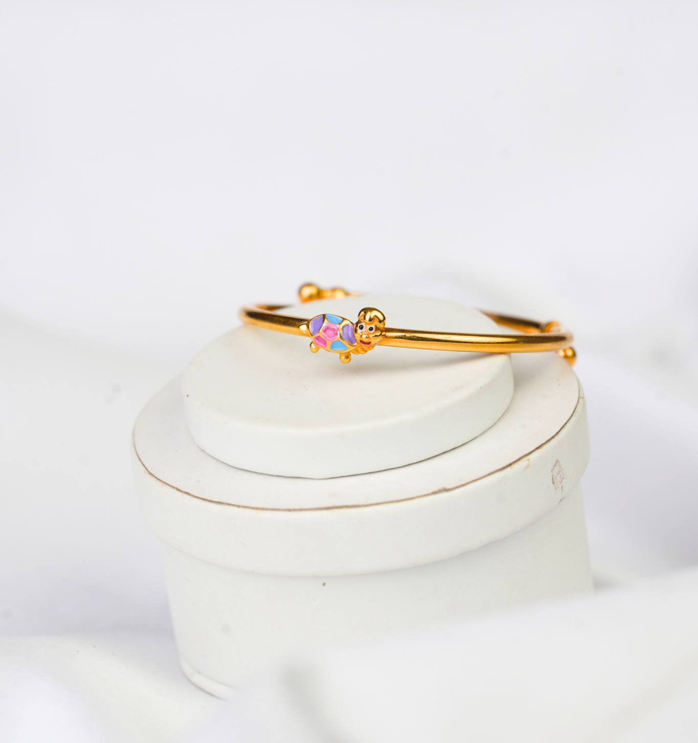 Crafted with care in pure 22Kt gold, this 4.160-gram Kids Kada is a perfect blend of tradition and charm. Designed for little wrists with smooth edges and a secure fit, it’s a beautiful gift to celebrate childhood with grace and style. Only at Sri Swarnambigai Jewellers.