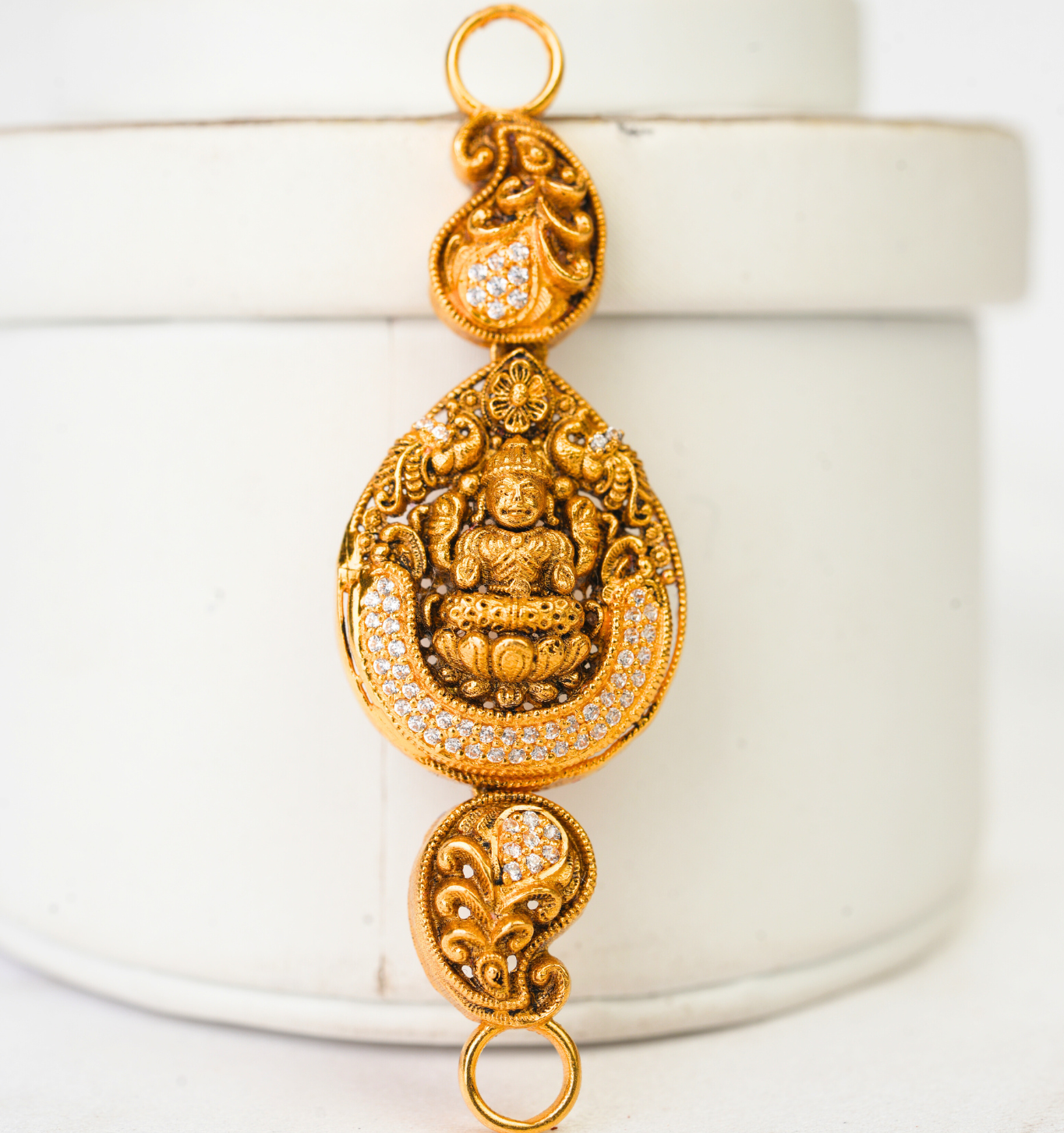 Elegantly designed in pure 22Kt gold, this 3.934-gram Ladies Mugappu adds a graceful charm to your traditional thali chain. With intricate craftsmanship and a timeless appeal, it enhances your ethnic style with a touch of tradition. Exclusively available at Sri Swarnambigai Jewellers.