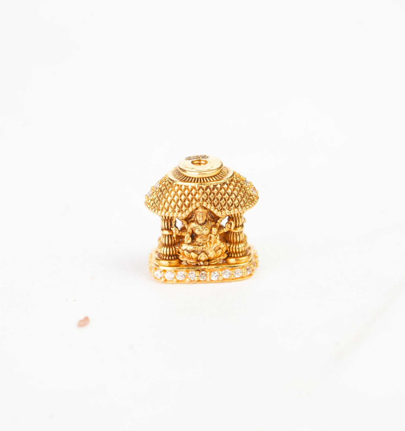 Exquisitely handcrafted in 22Kt gold, this 4.590-gram Ladies Mugappu adds a graceful touch to your traditional thali chain or long haram. Designed with elegance and fine detailing, it beautifully enhances your ethnic look. A timeless piece of tradition — only at Sri Swarnambigai Jewellers.