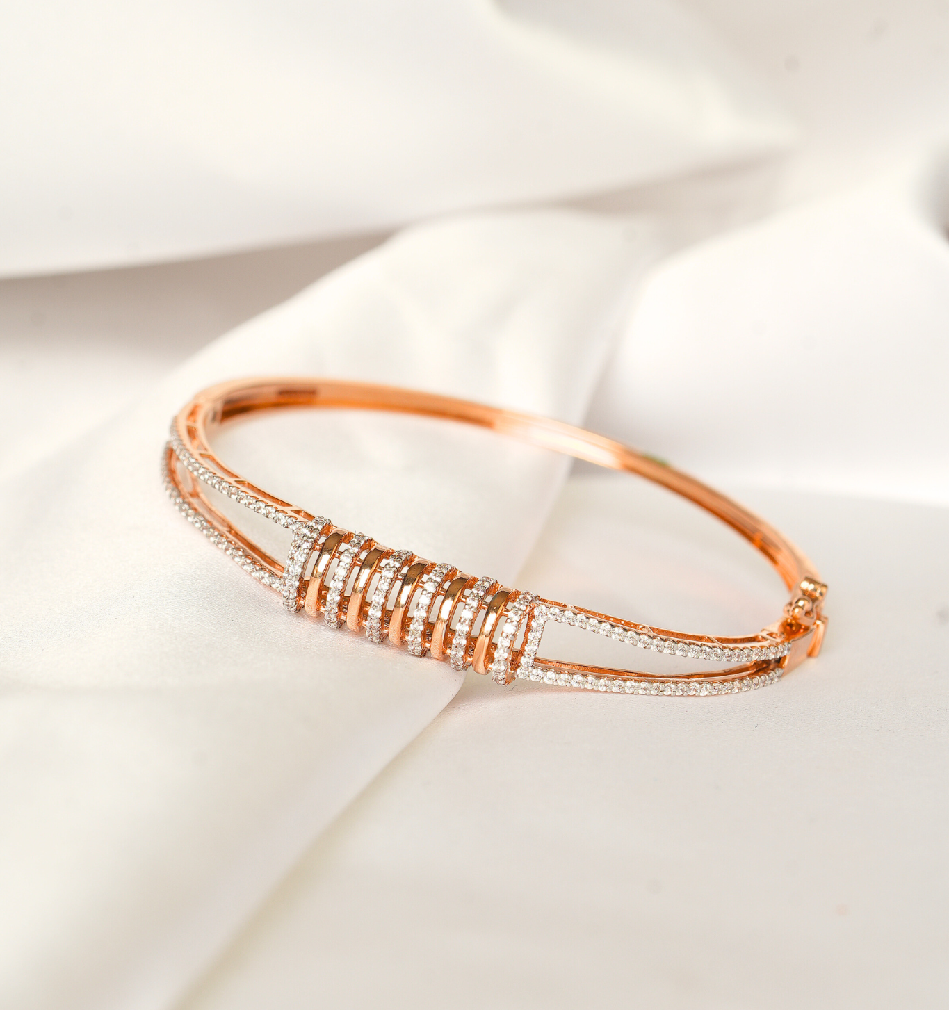 Elegant and timeless, this 18Kt Ladies Stone Kada weighs 12.460 grams and features a refined blend of gold craftsmanship and sparkling stones.