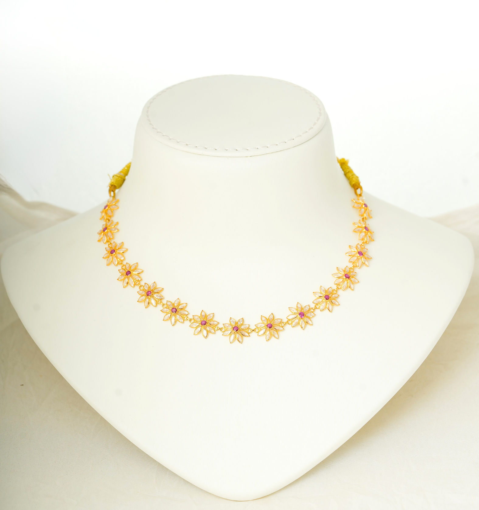 Experience timeless elegance with our handcrafted Polki necklace made in pure 22Kt gold. Weighing 8.330 grams, this stunning piece blends traditional artistry with royal charm – perfect for weddings, special occasions, or heirloom gifting.