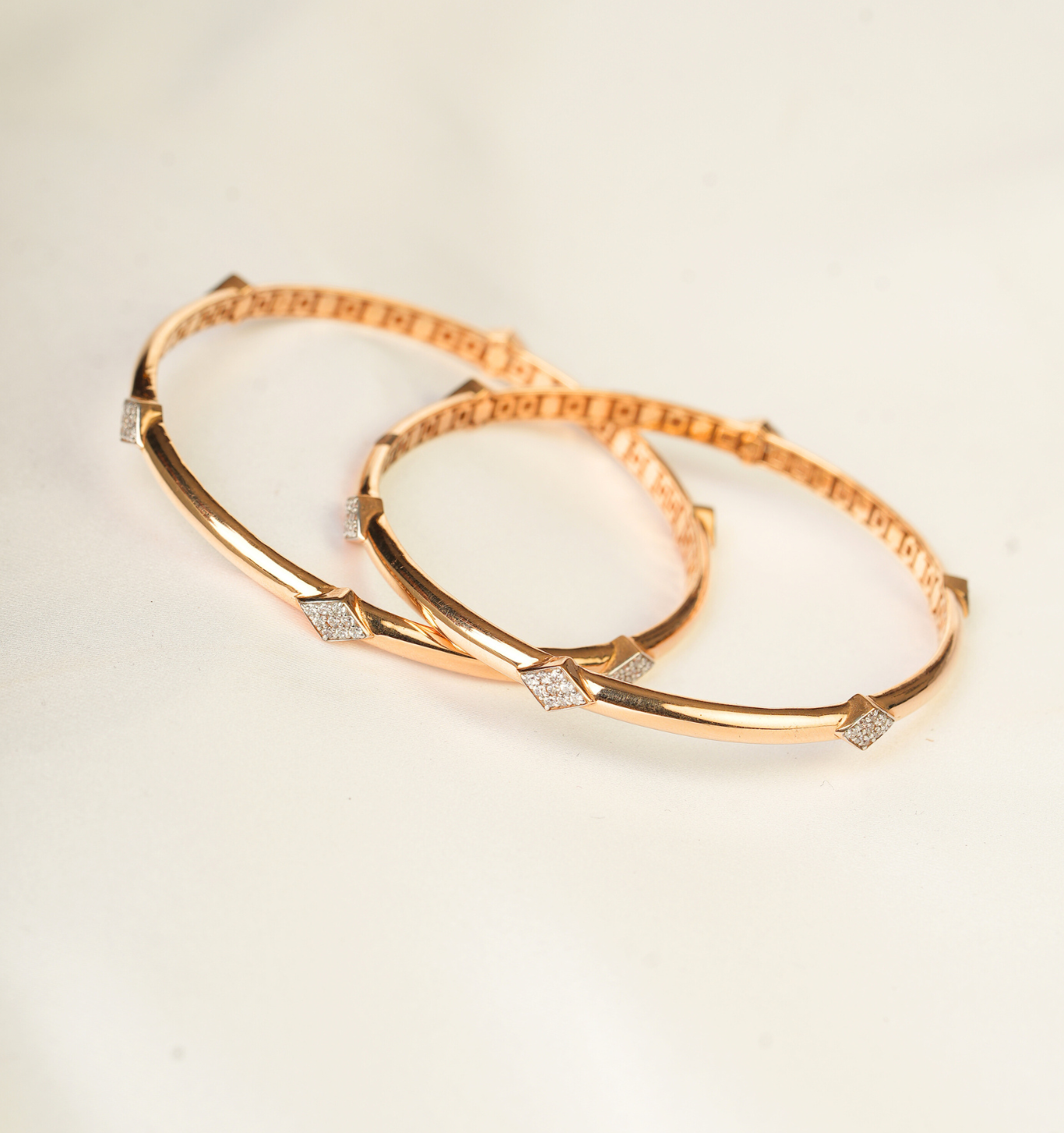 Elegantly designed in 18Kt gold and weighing 25.580 grams, these Stone Bangles are a perfect fusion of luxury and sparkle. Adorned with finely set stones, they offer a dazzling look for festive occasions or grand celebrations. A radiant addition to your jewellery collection — only at Sri Swarnambigai Jewellers.
