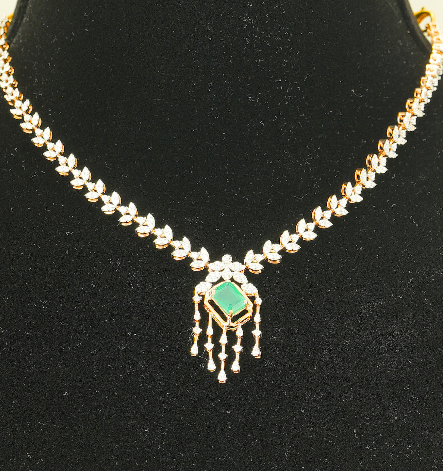 A graceful 18KT gold necklace weighing 14.040 grams, beautifully adorned with sparkling stones.